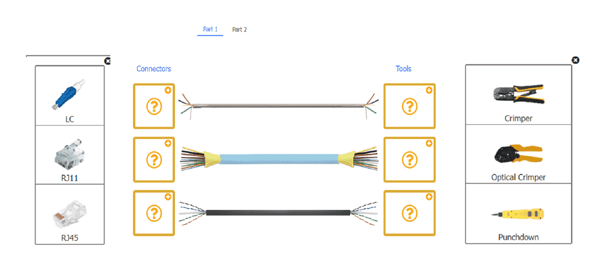 For each cable type, click the (+) to select the appropriate connector and tool.