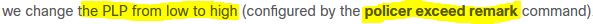 Which configuration changes the packet loss priority from low to highly?
