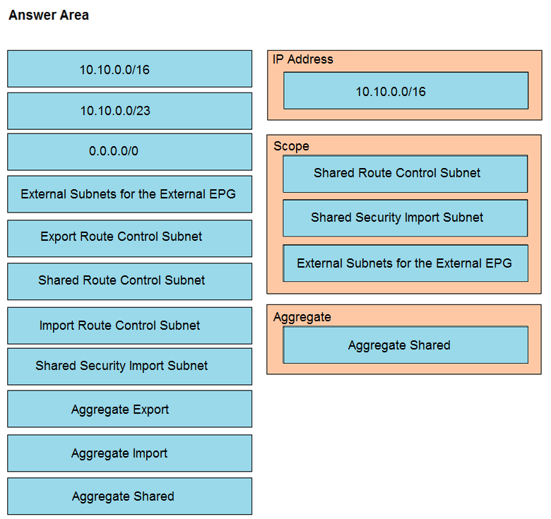Refer to the exhibit. Drag and drop the subnets and flags from the left into the External Network