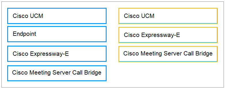 DRAG DROP Drag and drop the options from the left into the order on the right to make the call flow connect an endpoint that is registered to Cisco UCM to a Cisco Meeting Server meeting. Not all options are used.