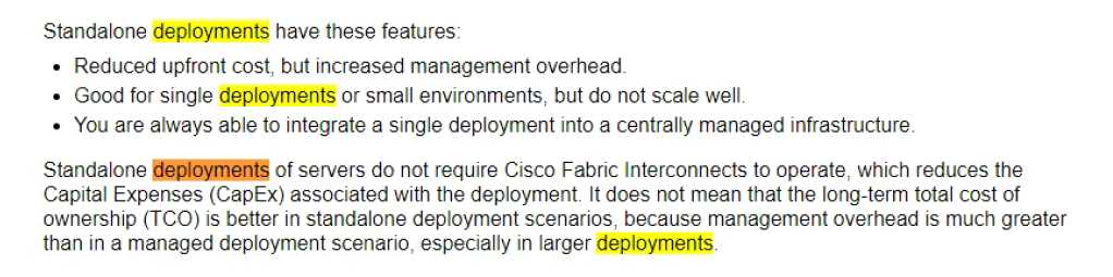 Which statement about Standalone Cisco UCS Server Deployments is valid?