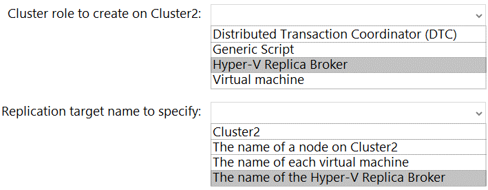 You plan to use Hyper-V Replica to replicate the virtual machines from Cluster1 to Cluster2.