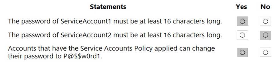 The members of a group named Service Accounts are shown in the Group exhibit. (Click the Group