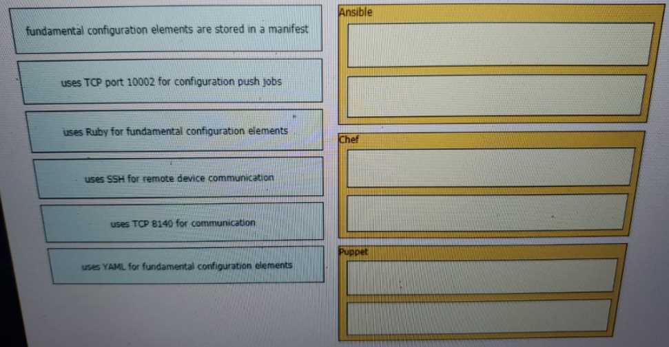 DRAG DROP Drag and drop the descriptions from the left onto the configuration-management technologies on the right. Cisco CCNA 200-301 question
