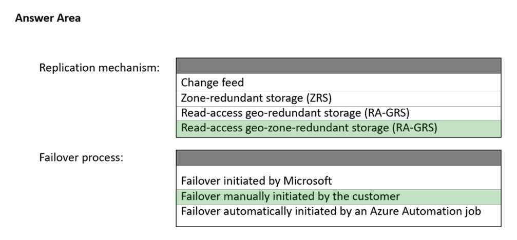 Box 1: Execute If you are granting permissions by using only ACLs (no Azure RBAC), then to grant a security principal read or write access to a file, you'll need to give the security principal Execute permissions to the root folder of the container, and to each folder in the hierarchy of folders that lead to the file. Box 2: Execute On Directory: Execute (X): Required to traverse the child items of a directory Box 3: Write On file: Write (W): Can write or append to a file. Reference: https://docs.microsoft.com/en-us/azure/storage/blobs/data-lake-storage-access-control