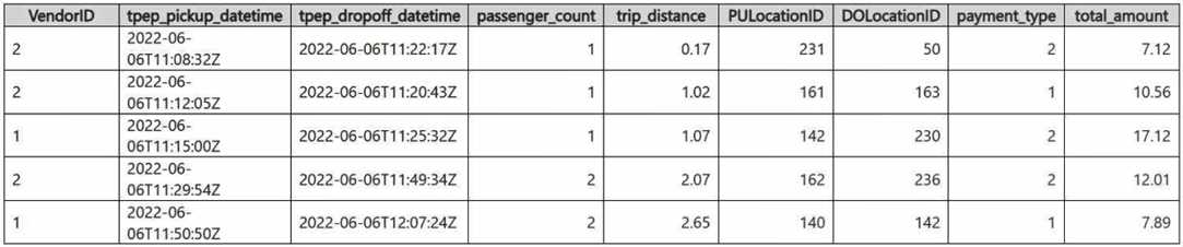 DRAG DROP You have a Fabric eventhouse that contains a KQL database. The database contains a table named TaxiData. The following is a sample of the data in TaxiData.