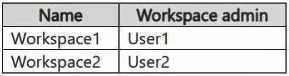 HOTSPOT You have three users named User1, User2, and User3. You have the Fabric workspaces shown in the following table.
