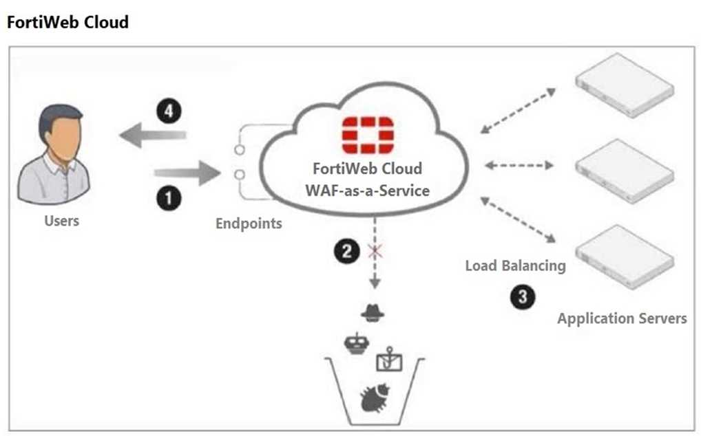 servers must be configured to point to FortiWeb Cloud. This ensures that all incoming traffic is routed