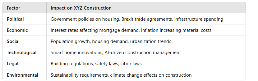 XYZ is a construction firm which builds houses in Birmingham. Discuss a tool that it can use to assess