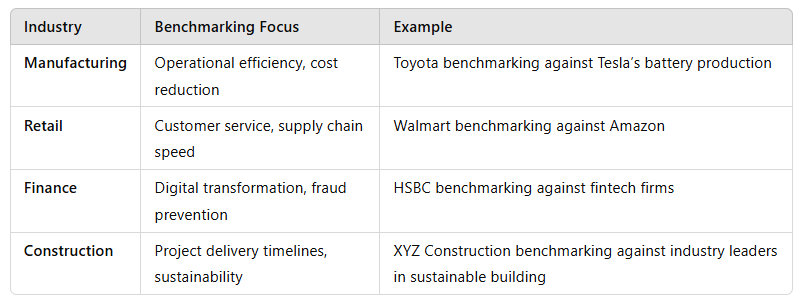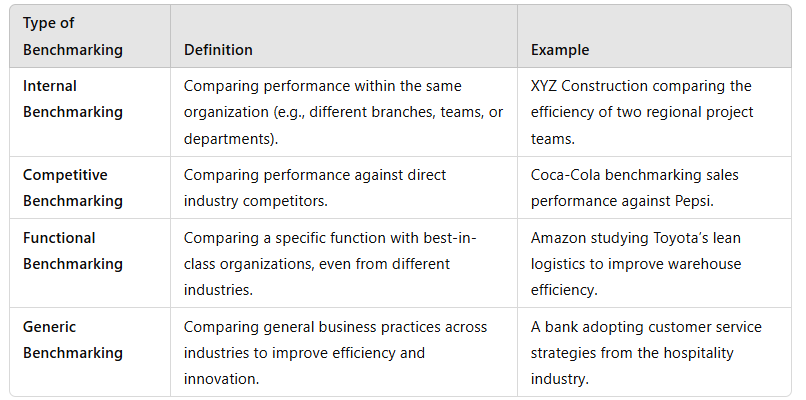 Assess benchmarking as an approach to analysing an organisations performance.