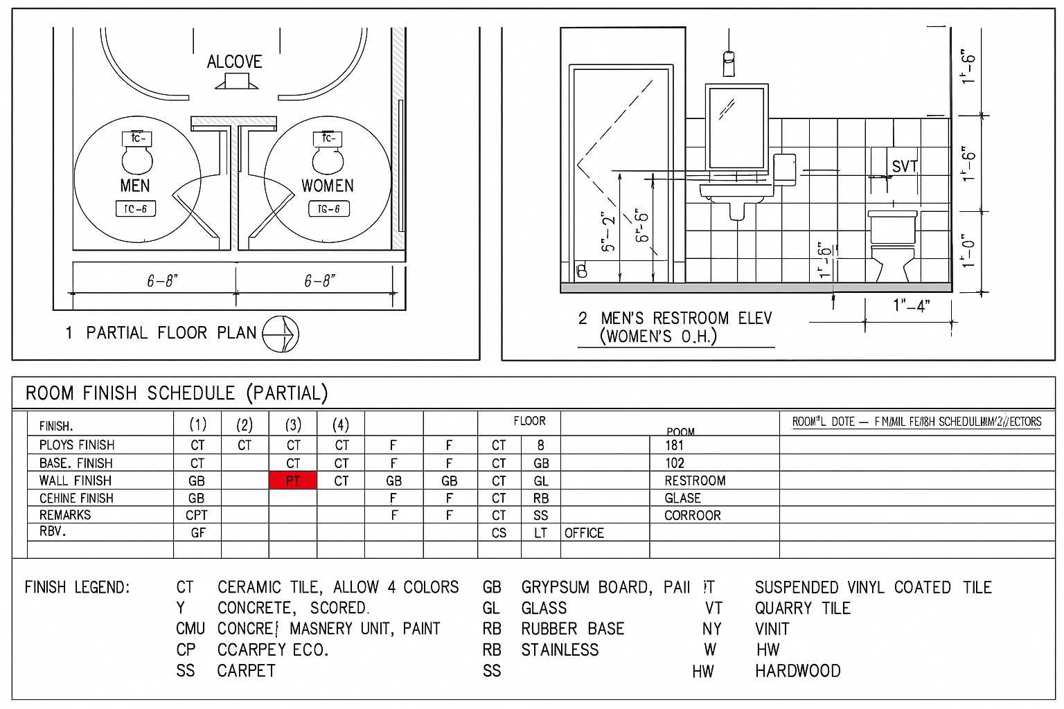 HOTSPOT During drawing review, a discrepancy is found between the drawings and room 101 on the finish schedule. Click in the cell on the room finish schedule that does not match the drawings.