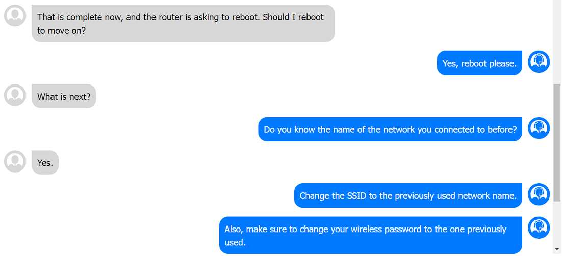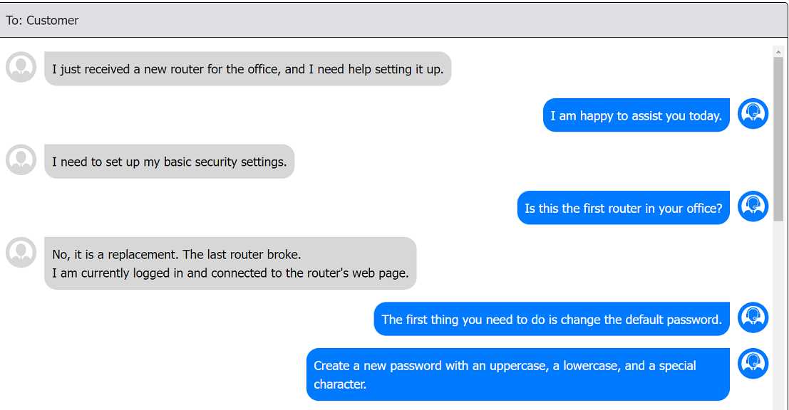 You have been contacted through the help desk chat application. A user is setting up a replacement SOHO router. Assist the user with setting up the router.
